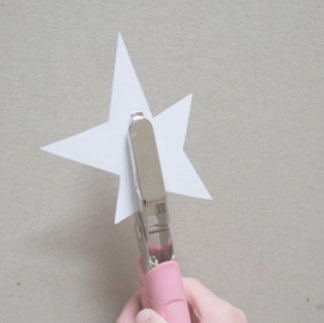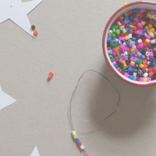 Stappen: 1. Begin met het uitknippen van verschillende stervormen uit je witte karton 2. Pons een klein gaatje door het midden van elke ster 3. Ontrafel je streng van LED-microlampen en rijg een ster op de streng, duw hem helemaal naar het einde van de streng. 4. Begin met het rijgen van je kralen aan de streng. Duw ze helemaal naar je eerste ster en stop bij het eerste licht. 5. Plaats je volgende ster op je streng en duw deze omhoog naar het volgende LED-lampje. 6. Ga door met dit proces (stap 4 en 5) totdat de hele streng LED-verlichting is gevuld met sterren en kralen (zorg ervoor dat je elke ster plaatst waar het licht is, zodat het gloeit). Knoop aan het einde de achterkant van de overgebleven draad af. 7. Je gloeiende en kleurrijke streng sterren is nu compleet! Veel plezier met het rond het huis of aan een boom hangen!